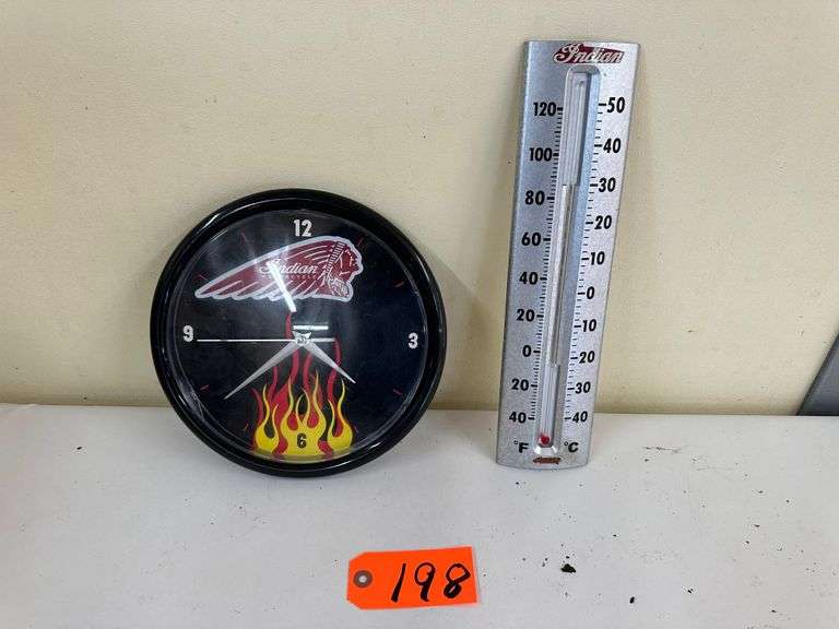 LOT 198 - Indian Motorcycle Thermometer & Clock